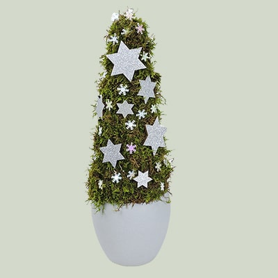 Decorated handmade Christmas tree in a cement pot. The tree is made of natural moss . Υ = 47cm Π = 20cm